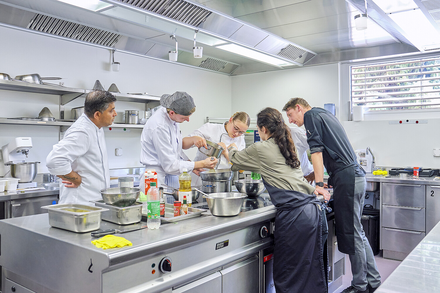 «Die Lernenden erhalten hier in kurzer Zeit viel Wissen und profitieren enorm», freut sich Daniela Tuniz im Gespräch mit Gourmet. Sie ist die Berufsschullehrerin der Kochlernenden am BBZ BL in Muttenz und war sofort begeistert, als Manfred Hamsa von Hügli auf sie zukam. «Für die Lernenden ist das eine willkommene Abwechslung, für uns uns eine wertvolle Unterstützung durch Fachpersonen.» Auch Thomas Nussbaumer zeigt sich überzeugt vom Konzept. Er ist Präsident des Schweizer Kochverbands, an diesem Tag aber in erster Linie Geschäftsführer GastroBaselland und damit Gastgeber in Liestal. Kochprofis hätten sich immer schon untereinander unterstützt und das Fachwissen untereinander weitergegeben, betont er. «Auch ich habe in meiner Kochausbildung enorm viel von anderen profitiert. Diesen werde ich das nie zurückgeben können, aber ich kann es anderen, jungen Köchinnen und Köchen weitergeben. Und genau dieser schöne und wichtige Aspekt unseres Berufsbilds zeigt sich an einem solchen Tag besonders gut.» Zudem sei es schön zu sehen, wie die jungen Berufsleute ihre Arbeit nun stolz den Berufsbildnerinnen und Berufsbildnern präsentieren.