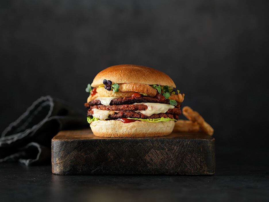 Das vorgeformte Plant-based Smash Burger Patty überzeugt mit grösserem Durchmesser als das klassische Burger Patty, ist mit 90g etwas leichter und lässt sich durch die flachere Form ideal stapeln. Dank IQF-Qualität wird nur die benötigte Anzahl an Patties direkt aus der Tiefkühltruhe auf die heisse Grillplatte oder in die Fritteuse gegeben. In wenigen Minuten gart das Patty perfekt zum saftigen Burger-Genuss mit leicht rauchigem Aroma.