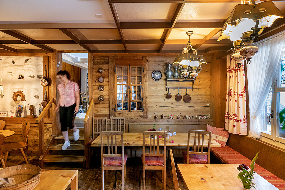 Und doch steckt das Dorf voller Attraktionen. So bietet es den besten Blick auf das Dreigestirn Eiger, Mönch und Jungfrau. Im Winter ist man im Nu in den besten Skiregionen des Berner Oberlands, im Sommer bietet Wilderswil den perfekten Ausgangsort für Wanderungen in der Jungfrauregion. Eine Attraktion in Wilderswil ist auch das Hotel Alpenblick. Zu ihm gehören drei Chalets: Stöckli, Enzian und Bergkristall. Hier haben Gäste die Wahl: vom Familienzimmer über das grosse Superiorzimmer bis hin zum Relaxzimmer mit privatem Dampfbad ist für jedes Bedürfnis das passende Angebot dabei. Das Hotel ist ein Zeitzeuge der Geschichte. In manchen Zimmern blieb der Ursprung erhalten, und andere wurden vollständig renoviert. In den Gängen hängen Bergaquarelle, alte Kaffeemaschinen, und museumsreife Küchengegenstände — Kompositionen, die dem Haus einen einzigartigen Charme verleihen. Die Geschichte des Hauses geht über 400 Jahre zurück. Schon immer wurde in diesem Haus für das Wohl von Gästen gesorgt. Doch essen konnte man nie so gut wie heute.