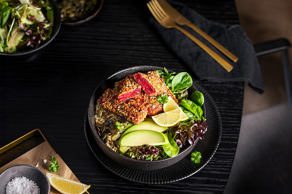 Knackig, knallig rot und voller Geschmack: Die Randen-Sticks von Caterline bringen Farbe und Genuss auf den Teller. Mit 52 Prozent Randen und einer knusprigen Kürbiskern-Panade bieten sie ein unverwechselbares Geschmackserlebnis. Verfeinert mit Zwiebeln, Hartkäse und ausgewählten Gewürzen sind sie aussen goldbraun und innen saftig. Tiefgekühlt und im Handumdrehen zubereitet, eignen sie sich perfekt als Snack, Beilage oder kreative Hauptspeise. Herzhaft, originell und einfach exquisit. Erhältlich im Grosshandel und unter: